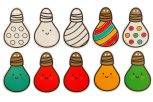 یک ریسه به طول 3 متر همراه با قطعات مقوایی لامپ و ستاره با قابلیت رنگ آمیزی قطعات و ساخت ریسه توسط خود کودک.